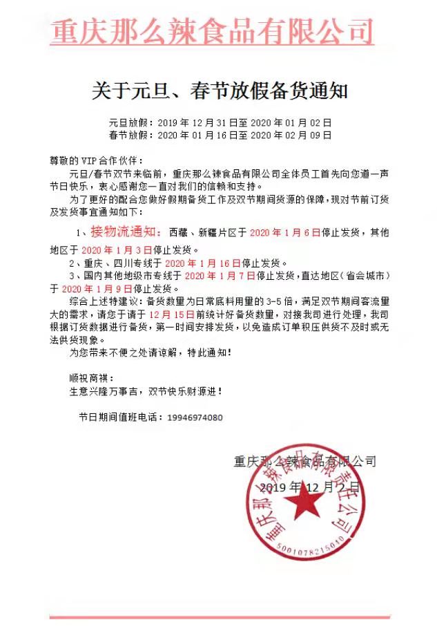 關(guān)于那么辣春節(jié)物流停運發(fā)貨通知